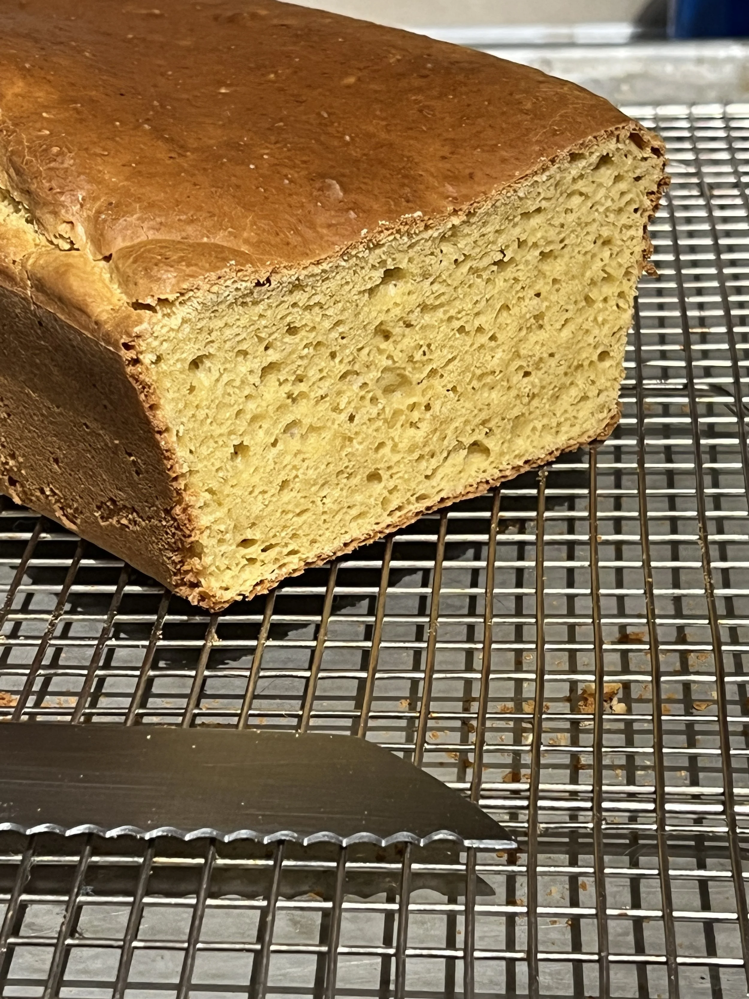 My current favorite gluten free bread, delicious with a little pat of butter or jam, toasted. Freezes very well after being sliced and wrapped in foil. The flavor is dependent on the type of gluten free flour you use. I tend to prefer a flour that has a good mix of grains like oats, millet, rice, sorghum, etc. If you use one specific grain for the gf flour, note that it’ll tend to become dominant in the flavor of the bake. I usually just grab a bag of Red Mill one to one gluten free, as it is premixed with xanthan gum to add some chew to the finished loaf.